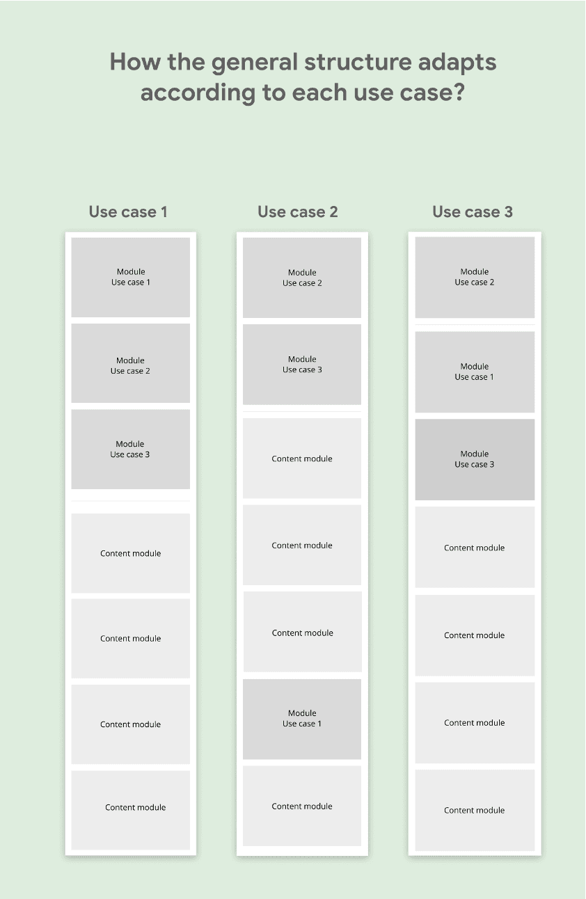 To translate these insights into a tangible experience, we structured the platform using a modular design approach. The experience was broken down into three core interaction models: