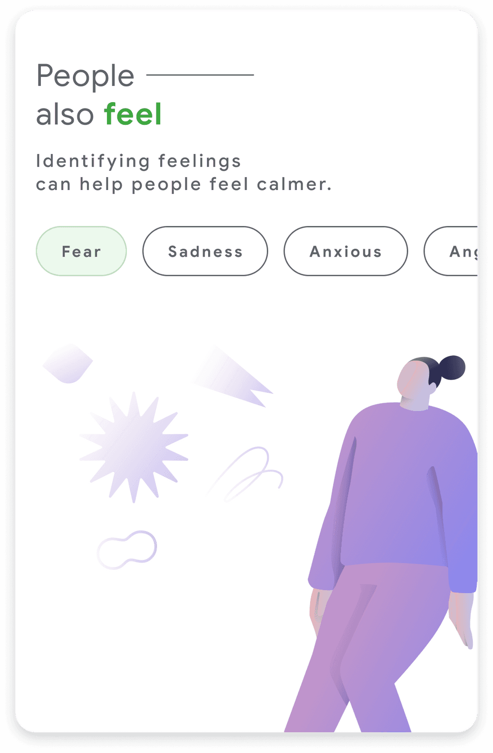 Illustrations played a crucial role in enhancing emotional connection within the interface. We focused on soft, warm visuals that evoked a sense of safety and understanding. These illustrations were carefully integrated to de-escalate negative emotions, provide comfort, and guide users through the experience in a non-intrusive way.