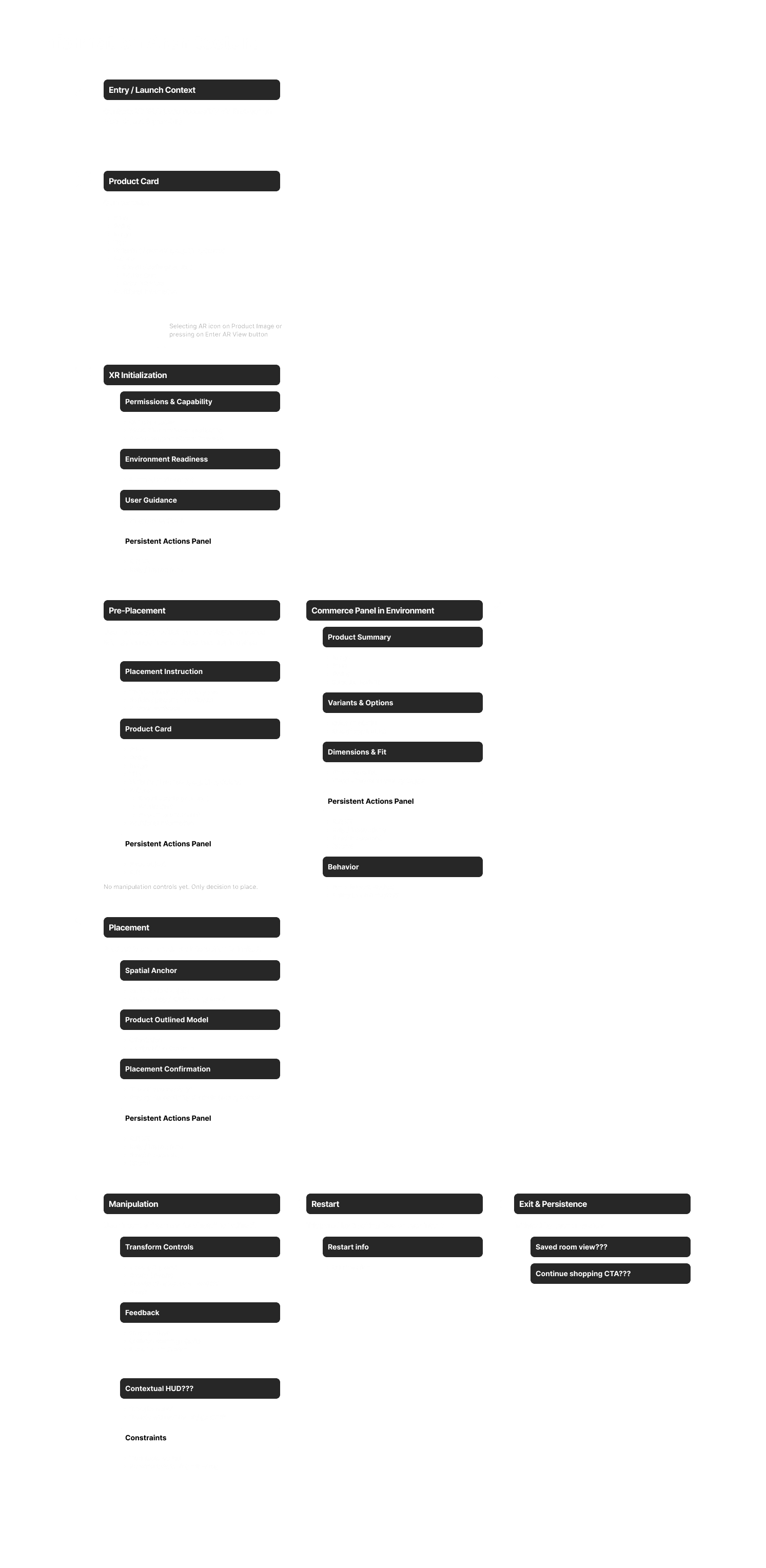 Our wireframing process moved away from traditional low fidelity flat designs and into high fidelity contextual panels. Instead of heavy persistent menus that clutter the field of view, we designed UI that lives with the product. We mapped out a 3-mode journey: